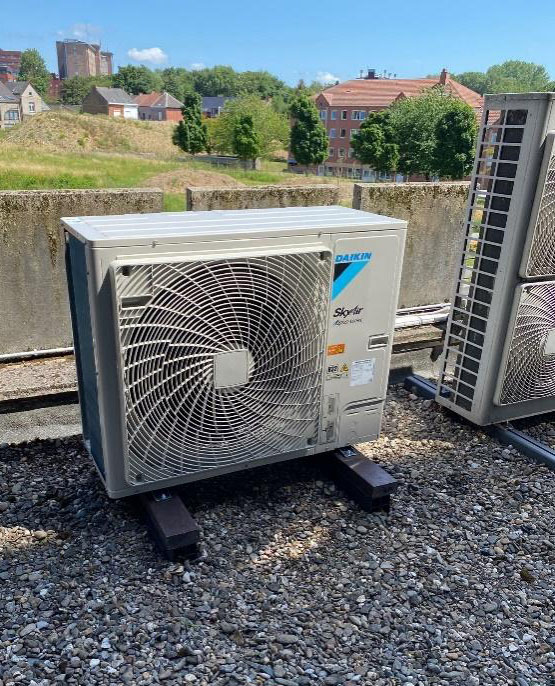 Installation d’une climatisation de type cassette 0 Installation Marque : Daikin Modèle : FCAG100B Client Hôpital du Tivoli Services Installation d’une climatisation de type Cassette Roundflow Skyair pour le racfraîchissement d’un laboratoire